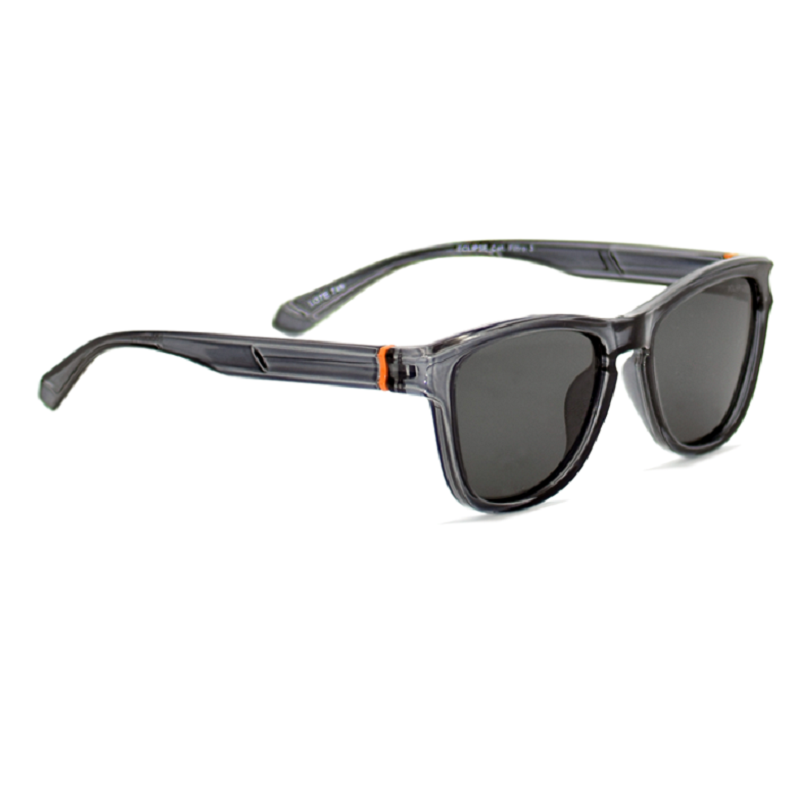Una nueva gafa sol más clásica en la colección Sol 2025. Fabricada en policarbonato transparente con unos detalles naranjas en el inicio de la varilla, dándole un toque más desenfadado. Con una forma más redondeada es una gafa que se adapta a cualquier rostro. Tanto su forma y color permiten completar un look deportivo y cómodo