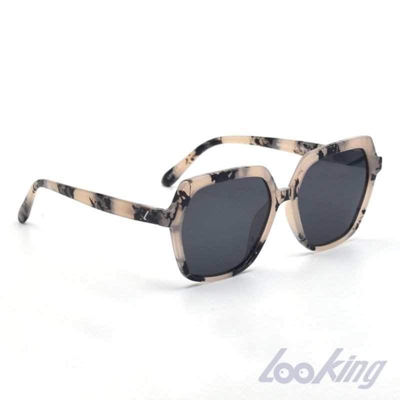 Las gafas de sol Micaela destacan por su diseño cuadrado de inspiración geométrica con un marcado aire retro, ideal para mujeres que buscan un complemento con personalidad y estilo propio. Su montura jaspeada en tonos rosa y negro, fabricada en policarbonato ligero de alta calidad, aporta luminosidad al rostro y un acabado moderno y sofisticado.