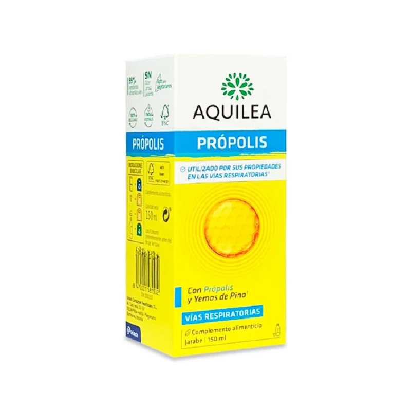 Aquilea Própolis Jarabe es un complemento alimenticio natural a base de própolis y una combinación de plantas tradicionalmente utilizadas por sus propiedades en las vías respiratorias ideales para las épocas de frío o cambios de temperatura.