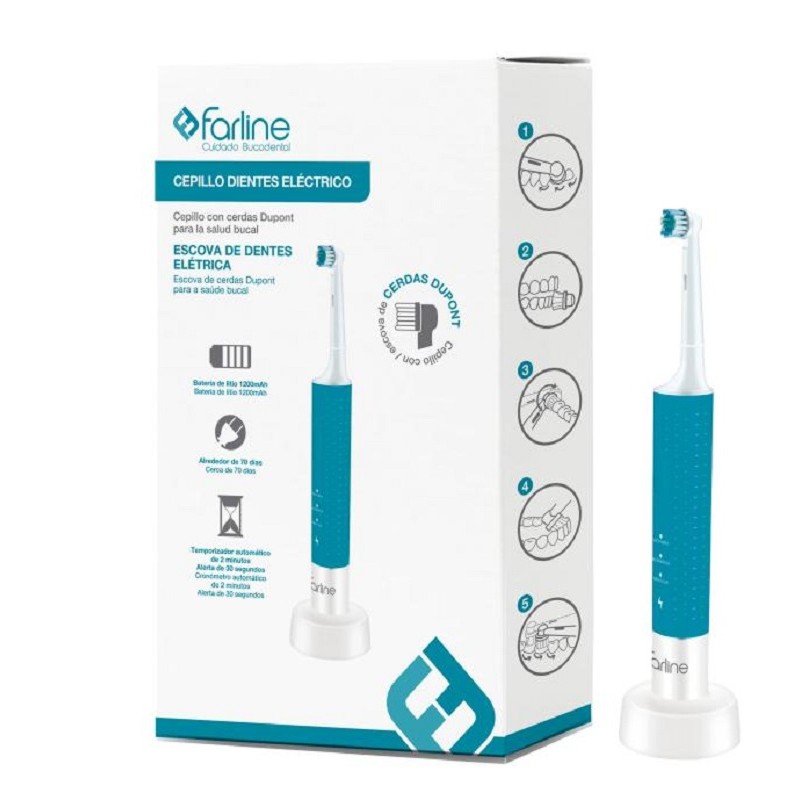 El cepillo dental eléctrico Farline ofrece una limpieza superior a la de un cepillo de dientes manual normal. Su cabezal, con diseño redondeado, oscila y rota mientras rodea al diente, para la mayor eliminación de la placa dental.