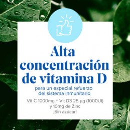 La vitamina C y el Zinc, contribuyen a una protección celular y a un refuerzo del sistema inmune. La vitamina D contribuye al normal funcionamiento del sistema inmune.