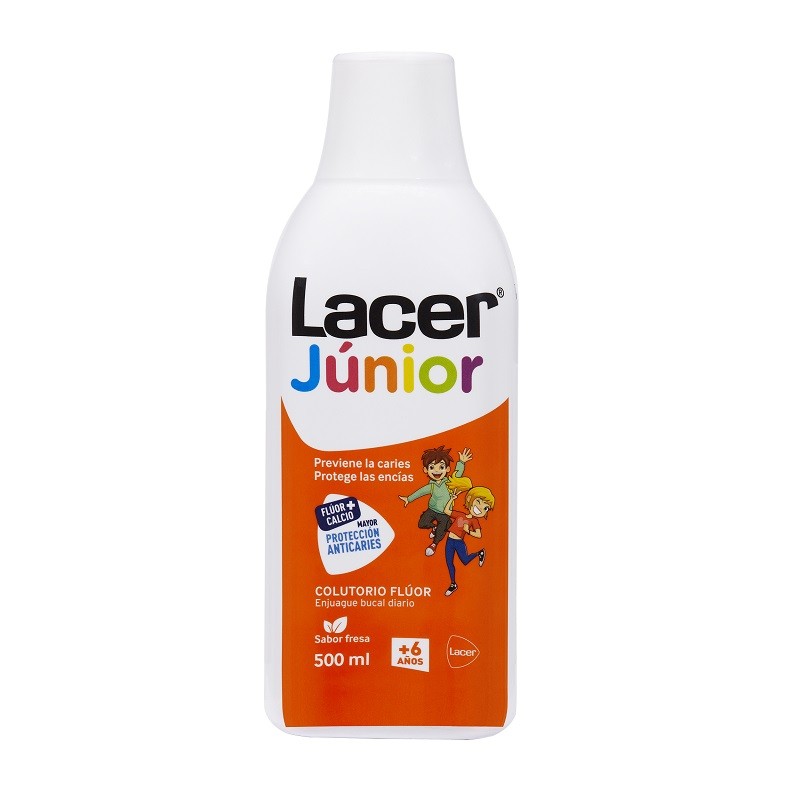 Flúor Lacer Júnior se renueva en el cuidado de la salud bucodental infantil con nuevas fórmulas mejoradas, nuevas indicaciones y nuevos diseños en toda la gama. Flúor Lacer Júnior es un enjuague bucal, de uso diario o semanal, que previene la caries de forma eficaz y protege las encías de los más jóvenes. Dosis de flúor adecuada para uso diario (225ppm). La combinación del flúor + calcio, actúa como escudo protector en el diente, ayudando a mantener en buen estado el esmalte dental. Con Pantenol, que protege las encías. Con Xilitol, edulcorante no cariogénico que mejora la acción anticaries. Sin Gluten y sin Alcohol.