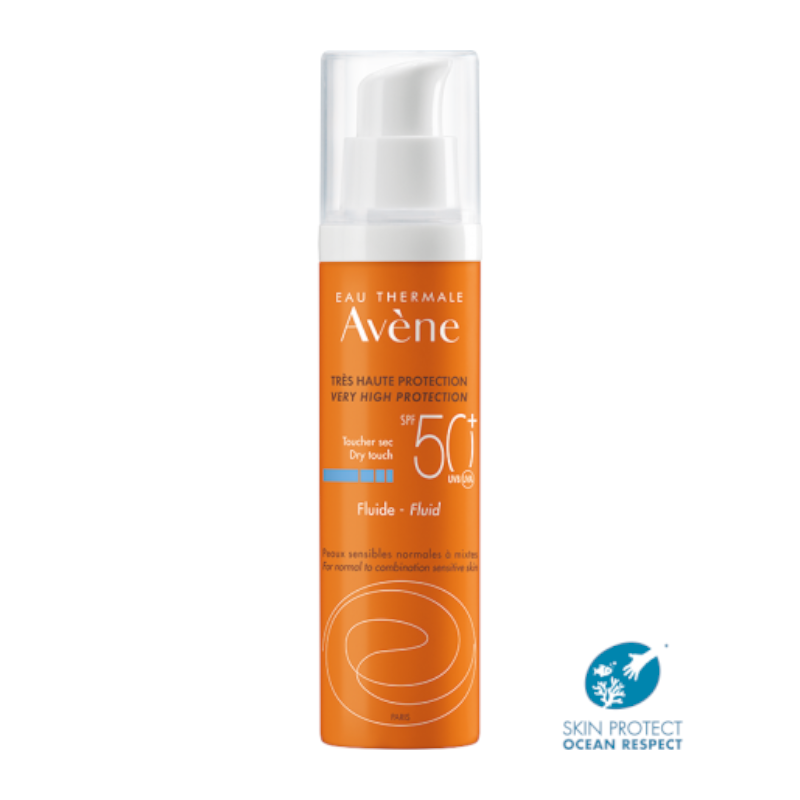 Protección solar para pieles sensibles, gracias al complejo fotoprotector patentado estable y eficaz en el tiempo Fluido SPF 50+. Muy alta protección solar del rostro para pieles sensibles normales a mixtas. Protección de amplio espectro UVB-UVA. Fotoestable. Tacto seco. Oil-free.
