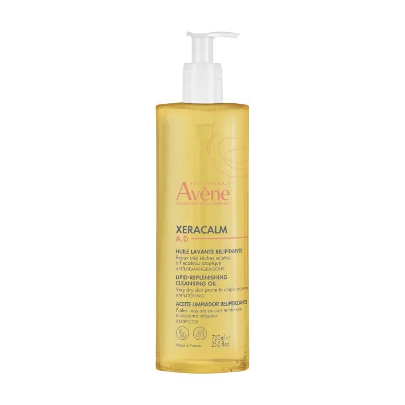 XeraCalm A.D..Aceite limpiador relipidizante limpia suavemente y alivia la piel muy seca con tendencia a la dermatitis atópica y al picor. Como primer paso de la rutina antipicor, deja la piel suave y cómoda, y respeta el microbioma cutáneo. Sin jabón y con un pH fisiológico, puede utilizarse durante los periodos de brotes en el rostro, el cuerpo y el cuero cabelludo. Su fórmula combina el primer activo posbiótico derivado del Agua termal de Avène, I-modulia®, que reduce el picor*, estimula las defensas de la piel y lucha contra la irritación, con Cer-omega, lípidos similares a la piel con propiedades nutritivas y reparadoras en la barrera cutánea, y el Agua termal de Avène, con propiedades calmante, antiirritante y suavizadoras. Sin fragancia y formulado para minimizar el riesgo de reacciones alérgicas, XeraCalm A.D..Aceite limpiador relipidizante no pica en los ojos y es ideal para la piel de recién nacidos, niños y adultos.