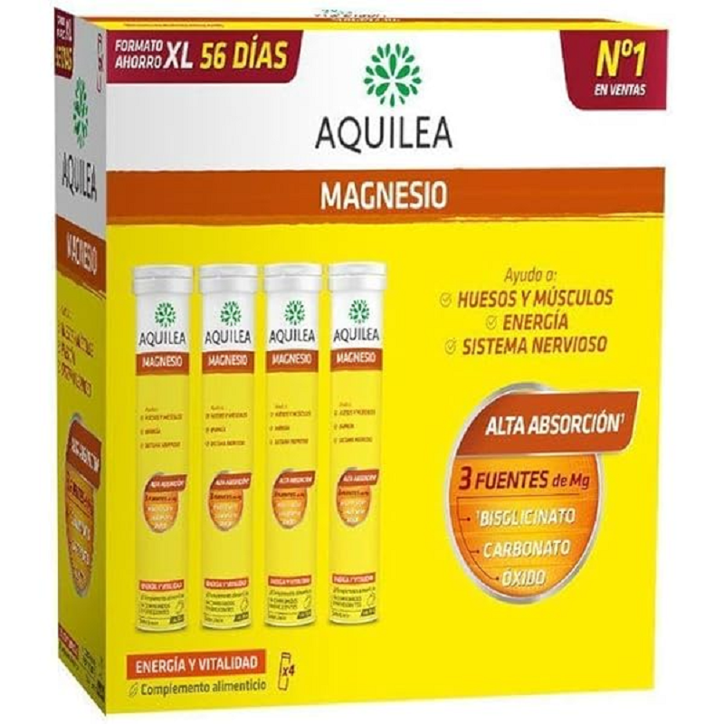 Aquilea Magnesio te aporta en un solo comprimido efervescente al día el 100% de la Cantidad Diaria Recomendada de magnesio que necesita tu cuerpo para ayudarte a estar en plena forma, con un agradable sabor a limón.
