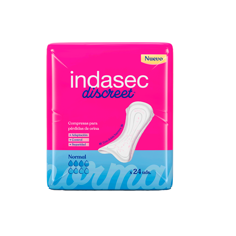 Indasec Discreet® Normal es la solución ideal para controlar pérdidas leves habituales. Se adapta perfectamente a la ropa interior y ofrece la seguridad necesaria para llevar una vida sin limitaciones.