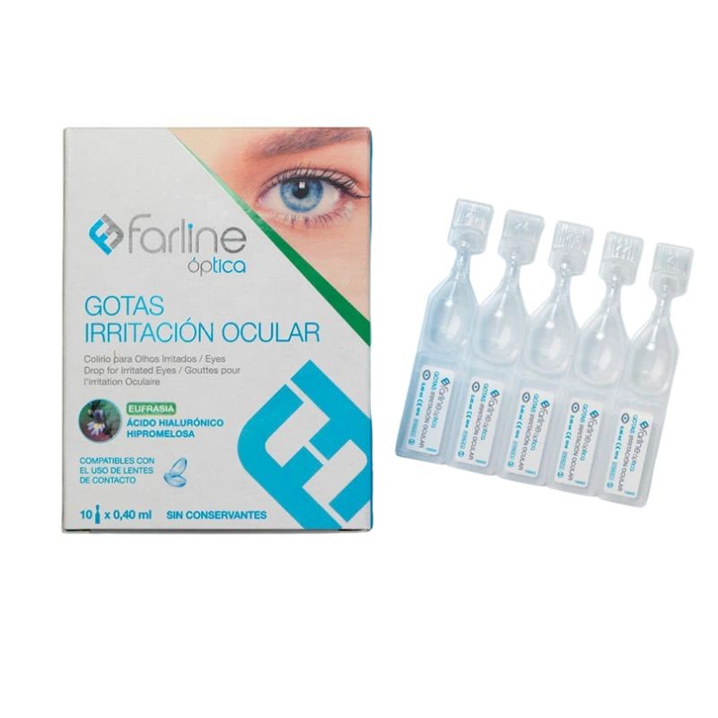 Gotas para irritación ocular con eufrasia, hipromelosa y ácido hialurónico. Para aliviar la sensación de ojo seco e irritaciones menores. Compatible con el uso de lentes de contacto. Sin conservantes. Cumple la normativa de productos sanitarios