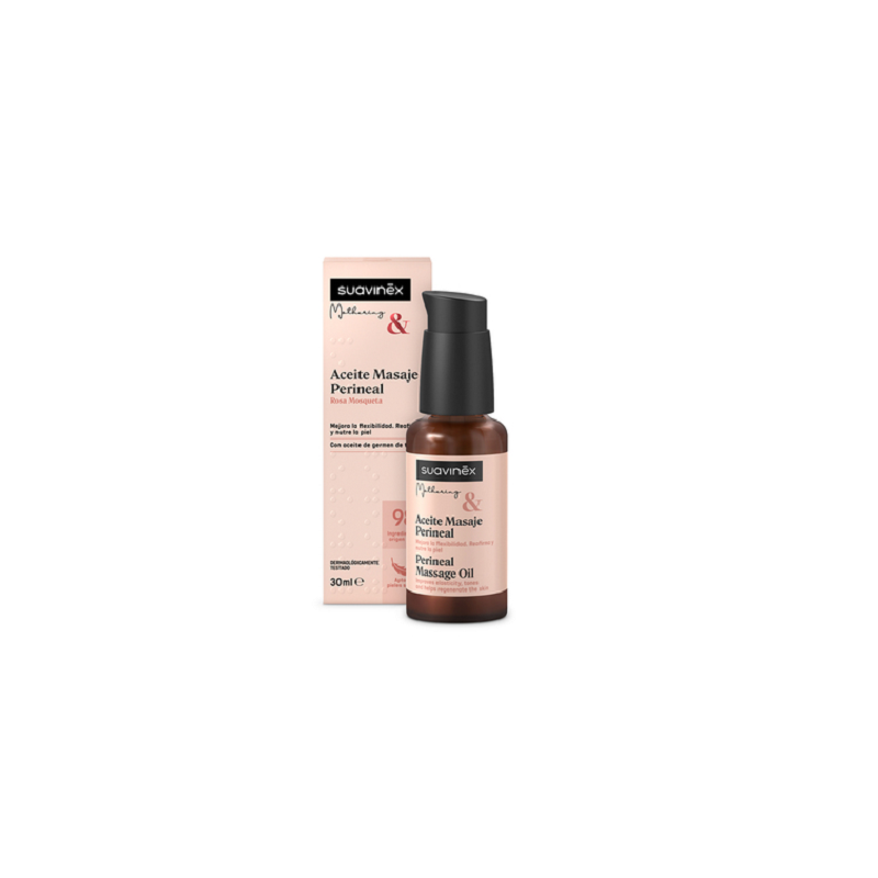 El Aceite de Masaje Perineal de Suavinex, junto con un masaje, ayuda a tonificar y acondicionar la zona del perineo mejorando su elasticidad antes del parto.