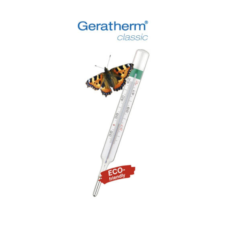 TERMÓMETRO ECOLÓGICO OVALADO con recipiente para vaciado de columna de galio - caja individual