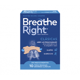 Las tiras nasales Breathe Right® son unas bandas flexibles que actúan como un resorte para levantar y abrir suavemente las fosas nasales , aumentar el flujo de aire y ayudarle a respirar mejor. Las tiras nasales Breathe Right alivian instantáneamente la congestión nasal asociada a patologías invernales, alergias o tabique nasal desviado